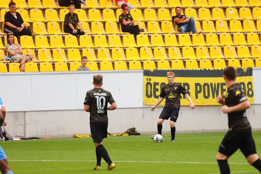 Im ersten Testspiel nach gut viermonatiger Corona-Pause kam die Alemannia am Samstagnachmittag zu einem 1:1 (0:1) gegen den Westfalen-Oberligisten Westfalia Herne. Bei der Premiere des neuen Cheftrainers Stefan Vollmerhausen erzielte Kai Bösing Mitte des zweiten Spielabschnitts vor rund 250 Zuschauern auf dem Tivoli den Ausgleich für die Schwarz-Gelben.