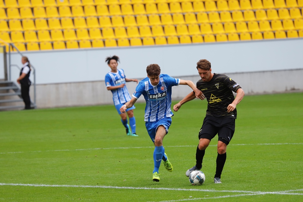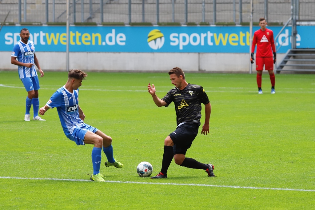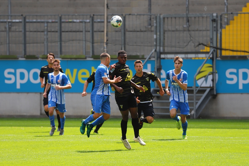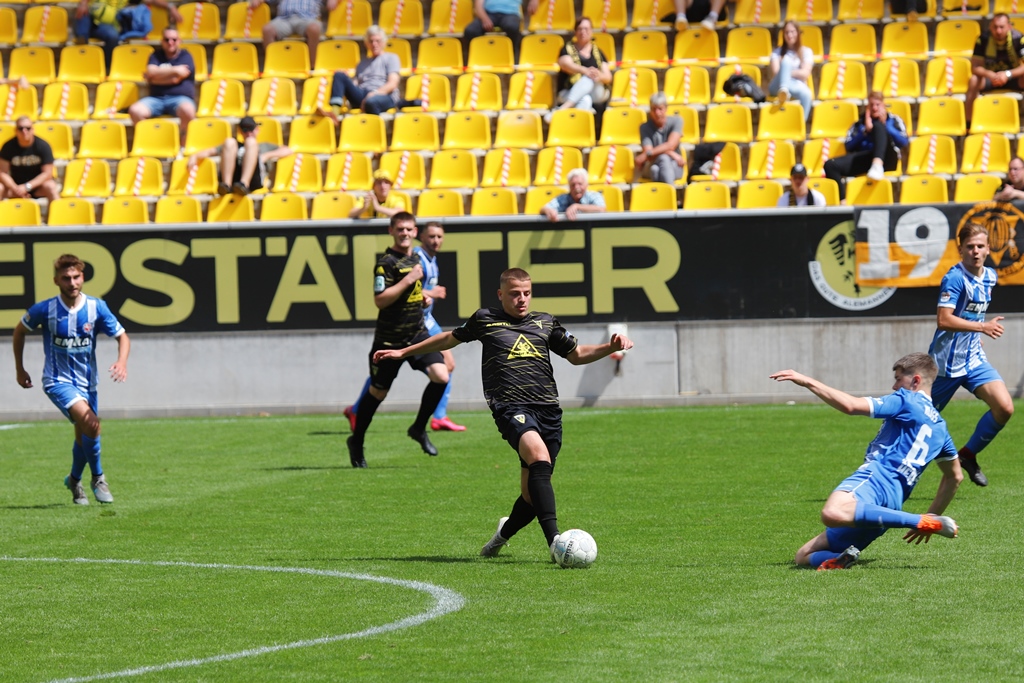 Neben Sebastian Schmitt, der sich im Freitag im Training einen Knöchelbruch zuzog und langfristig ausfallen wird, fehlten auch Neuzugang Leon Gaedicke (Reha) sowie die angeschlagenen André Wallenborn, Florian Rüter und Stipe Batarilo. Dafür kam mit Oluwabori Falaye ein Testspieler über die komplette Spielzeit zum Einsatz. Die Partie startete aus Aachener Sicht suboptimal. Exakt 30 Sekunden waren gespielt, als die Gäste von einem Abstimmungsproblem profitierten und durch Stawski aus abseitsverdächtiger Position das 0:1 erzielten. Die Alemannia brauchte gut 20 Minuten um ins Spiel zu finden und kam danach auch zu einigen Abschlussaktionen. Boesen scheiterte nach einem schnell ausgeführten Freistoß zunächst an Gästekeeper Fauseweh (25.), dann setzte Fiedler einen Distanzschuss knapp links am Tor vorbei (31.). Boesen verpasste anschließend mit einem raffinierten Kopfball-Lupfer knapp den Ausgleich, als Baraza für den zu weit rausgeeilten Torhüter auf der Linie klärte (36.). Die anschließende Ecke setzte Müller freistehend knapp neben das Tor (37.).