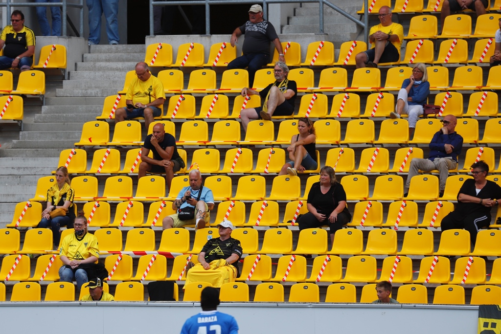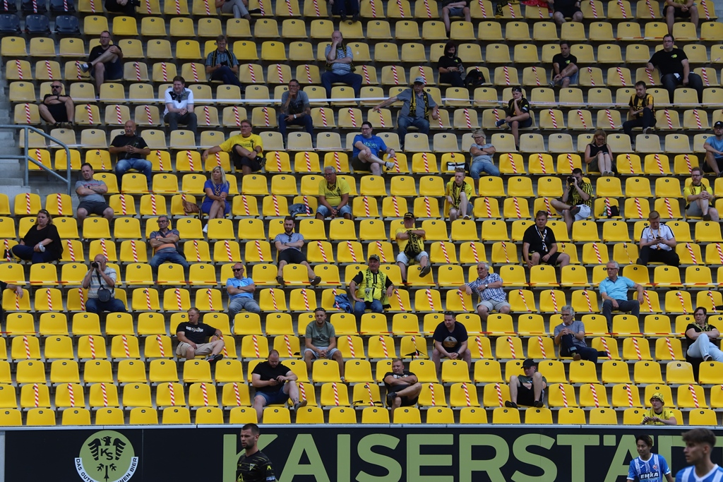 Auf der Tribüne sind einzelne Sitze sowie Sitzreihen mit Flatterband abgesperrt, damit die erforderlichen Abstandsregeln eingehalten werden. Wir bitten darum, sich an alle Vorgaben zu halten und nur auf die freien Sitze zu setzen. Für die verfügbaren Sitze (Blöcke O3/O4) gilt bei diesem Spiel freie Platzwahl.