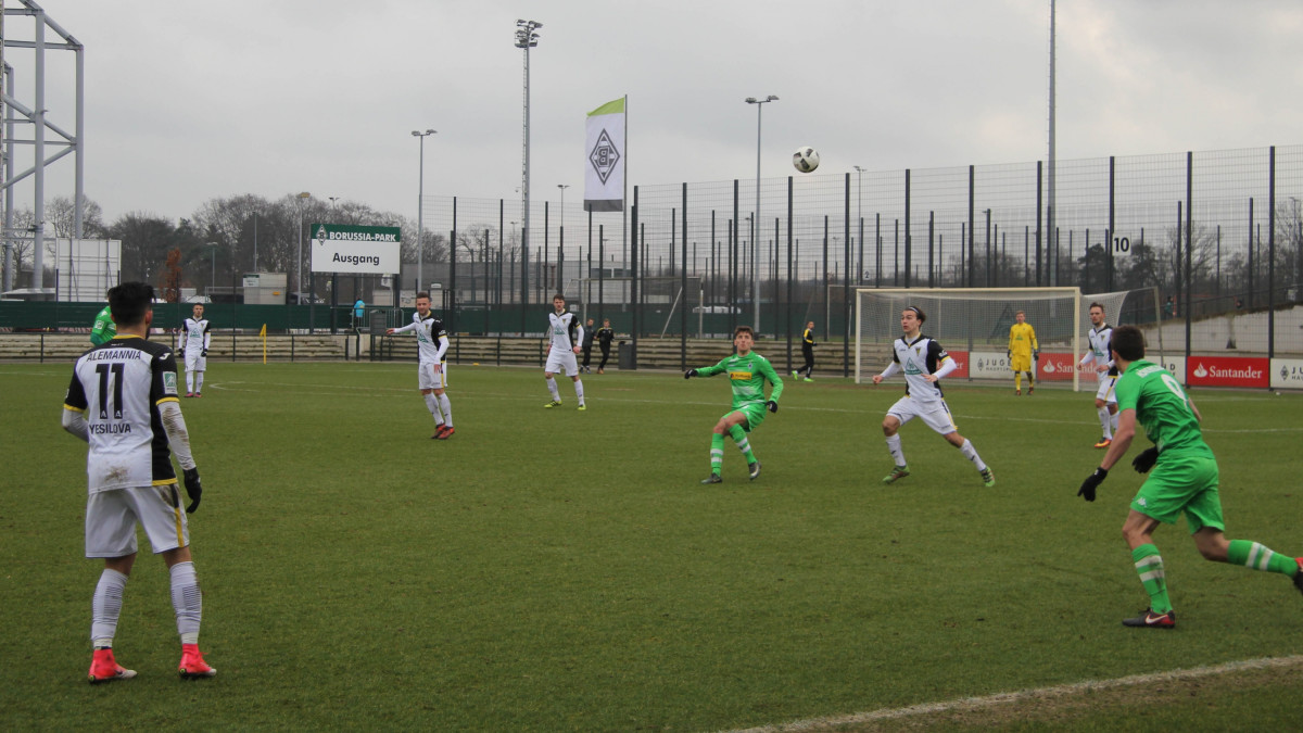 Nach der Pause verhinderte Borussia-Keeper Hiemer mit einem Reflex das 0:1 nach einer artistischen Direktabnahme von Mickels (47). Feigenspan prüfte auf der Gegenseite Depta aus spitzem Winkel (59.). Der Torhüter der Alemannia leitete auch die Führung seiner Elf ein. Ein langer Ball wurde von einem Gladbacher unglücklich nach hinten verlängert. Fejzullahu sprintete dazwischen und vollendete eiskalt zum 0:1 (65.). Keine 60 Sekunden später nutzte Fejzullahu einen Abspielfehler der Borussia-Abwehr erneut freistehend zum 0:2 (66.). Die Gastgeber mussten kommen und die Tivoli-Kicker bekamen mehr Räume. Nebi (70., volley) und Kleefisch (85., Kopfball) versäumten es jedoch, den Vorsprung auszubauen. Eine Minute vor dem Ende gelang Kraus nach einer Rechtsecke aus dem Getümmel noch der 1:2-Anschlusstreffer. Der Erfolg für die Alemannen geriet aber nicht mehr in Gefahr.