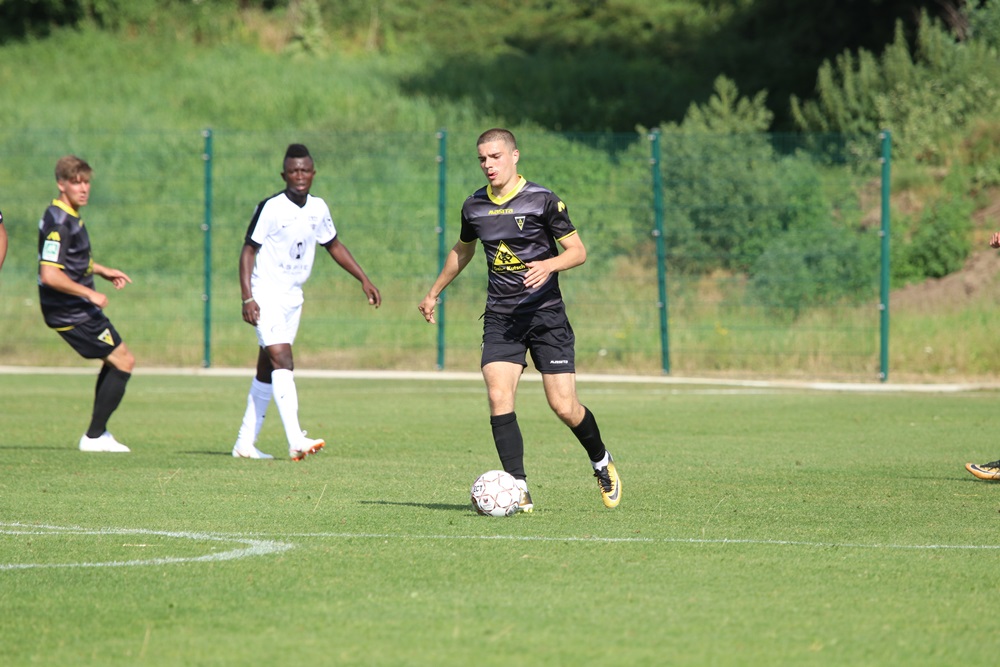 Die Belgier erspielten sich in den ersten Minuten Feldvorteile und hatten nach acht Minuten die erste gute Gelegenheit, als Pollet eine Flanke von der rechten Seite an die Latte köpfte. Die Alemannen konnten sich nach einer Viertelstunde vom Druck befreien, kamen zu vielen Ballgewinnen und schalteten gut um. Pütz eroberte das Leder an der Mittellinie und Temür schloss den Konter in Überzahl mit einem Schuss von der Strafraumgrenze ab. Das Leder ging knapp links vorbei (29.). Der disziplinierte Auftritt der Tivoli-Kicker erhielt kurz vor der Pause einen Nackenschlag, als Neuzugang Manuel Glowacz sich bei einem Zweikampf am Unterarm verletzte und mit Verdacht auf eine Fraktur ausgewechselt werden und  zur Untersuchung ins Krankenhaus musste.