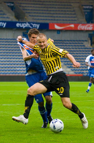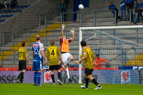 Die Alemannia hat am Freitagabend ein Testspiel beim belgischen Erstligisten KRC Genk mit 0:1 verloren. Coach Jürgen Seeberger musste auf Lukasz Szukala (Mandelentzündung), Stephan Straub (Magen-Darm-Grippe), Mirko Casper (Reha nach Kreuzbandriss) und Lewis Holtby (weilt bei der U19) verzichten. Kapitän Reiner Plaßhenrich wurde geschont. Nach Sprint- und Laktattest am Mittwoch und zwei harten Trainingseinheiten am Donnerstag war den Schwarz-Gelben die Müdigkeit noch deutlich anzumerken. Vor knapp 700 Zuschauern in der Cristal Arena markierte Adam Nemec, ehemals beim FC Erzgebirge Aue, per Kopf in der 62. Minute das Tor des Tages.