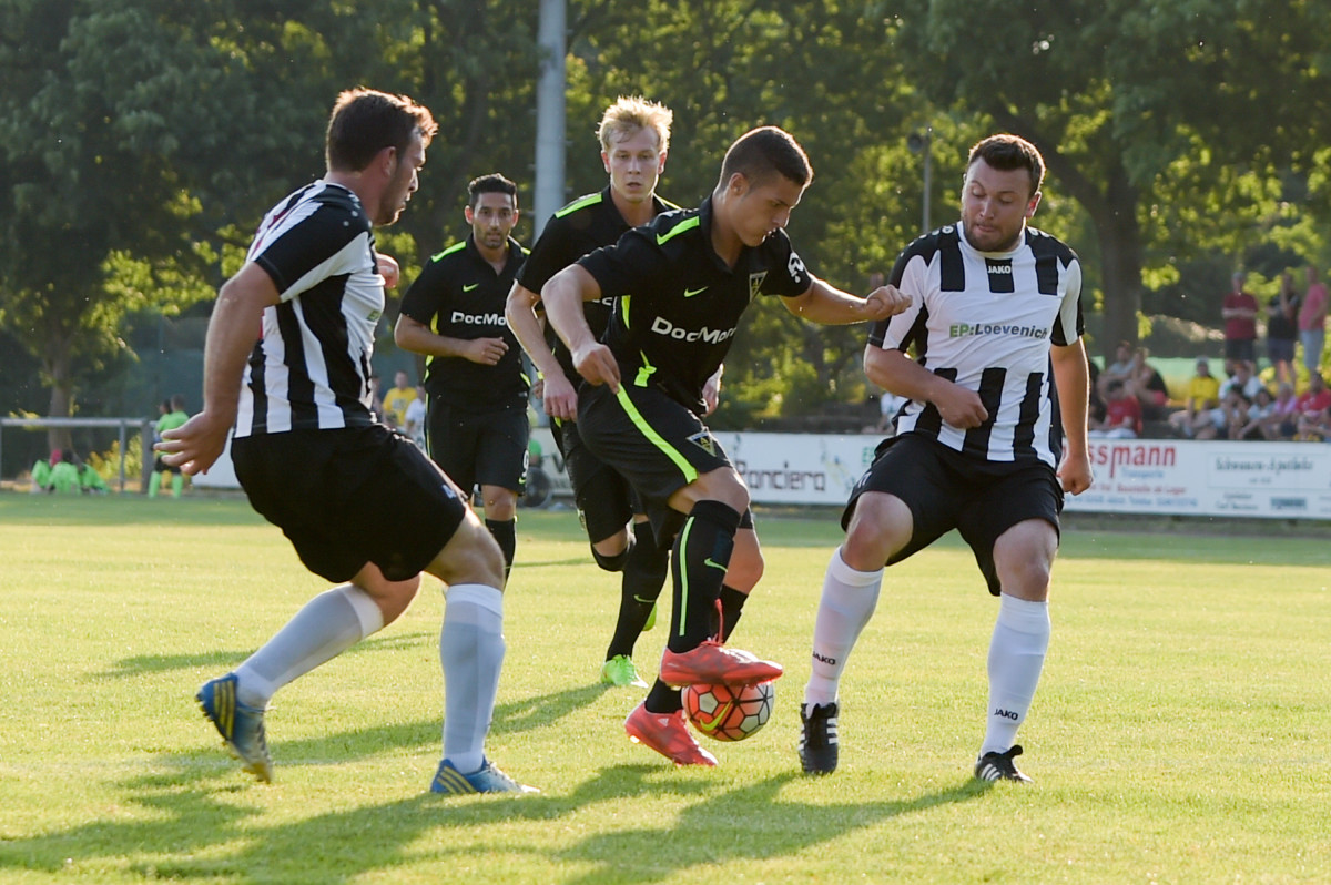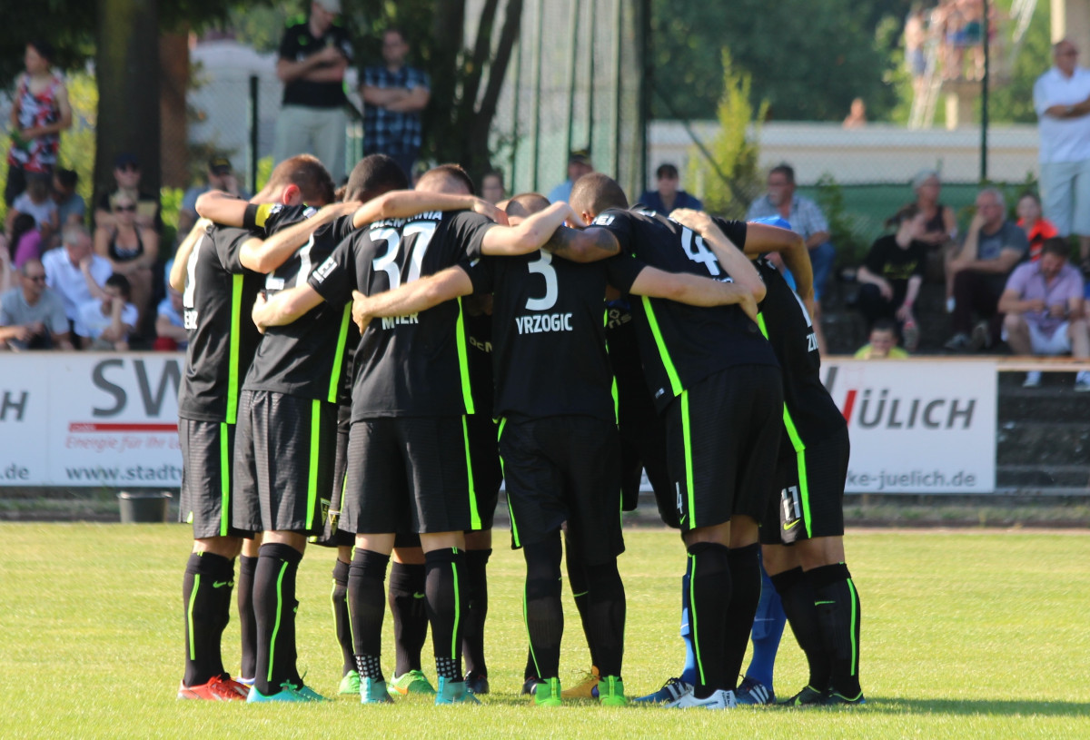 Gegen ein aus Akteuren des Landesligisten Germania Licht-Steinstraß, des Bezirksligisten FC Inden-Altdorf sowie des gastgebenden SC Jülich 10/97 (Kreisliga B) zusammengestelltes Team eröffneten die Schwarz-Gelben den Torreigen bereits in Minute 8. Nach einer Standardsituation bekam die Auswahl den Ball nicht aus der Gefahrenzone und Hackenberg traf aus zehn Metern zum 0:1. Nur fünf Minuten später erzielte Graudenz mit einem Flachschuss ins linke Eck das 0:2 (13.). Maier auf Zuspiel von Rüter (34.) sowie Zieba mit einem Abstauber nach einem Pfostentreffer von Graudenz (40.) schraubten das Resultat zum Seitenwechsel auf 0:4.