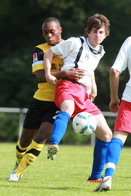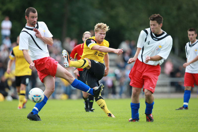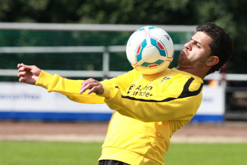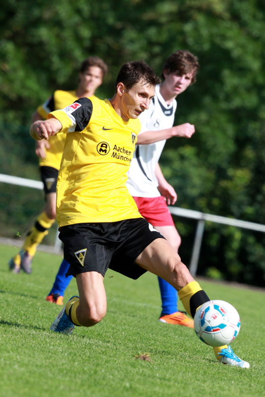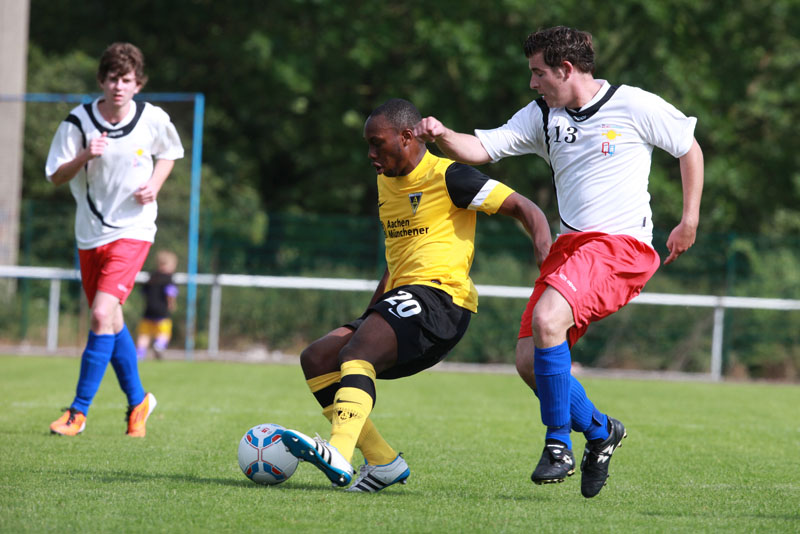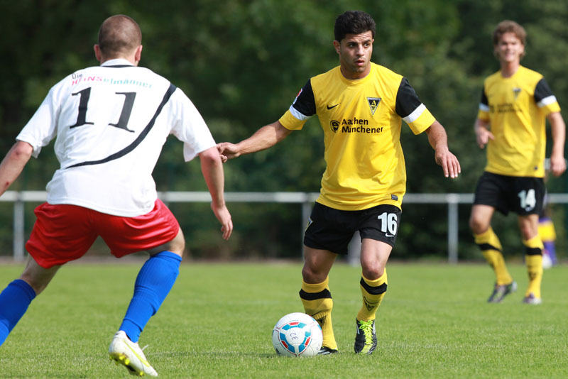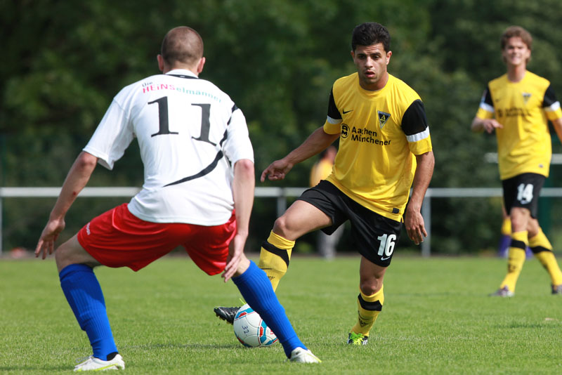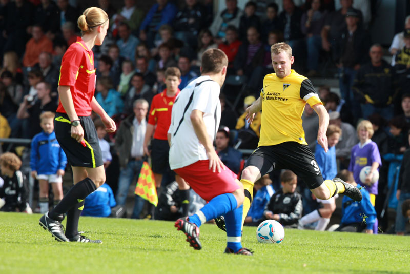 Die Alemannia kam nicht in den Rhythmus und sollte diesen während der gesamten ersten Halbzeit auch nicht finden. Durch viele Ballverluste machten sich die Schwarz-Gelben das Leben schwer. Die HS-Auswahl konterte flott, lief allerdings häufig ins Abseits. Einmal rettete David Hohs in höchster Not, aber in der 32. Minute war auch der Keeper machtlos. Einen gefälligen Angriff schloss Kevin Busch von Union Schafhausen zur umjubelten Führung ab. Weil es spielerisch weiter klemmte, musste eine Einzelleistung her. Uludag blieb zunächst hängen, jagte die Kugel dann aber mit einem Gewaltschuss in den Winkel – das 1:1 (36.) bedeutete gleichzeitig den Pausenstand.