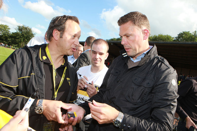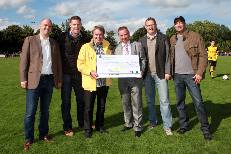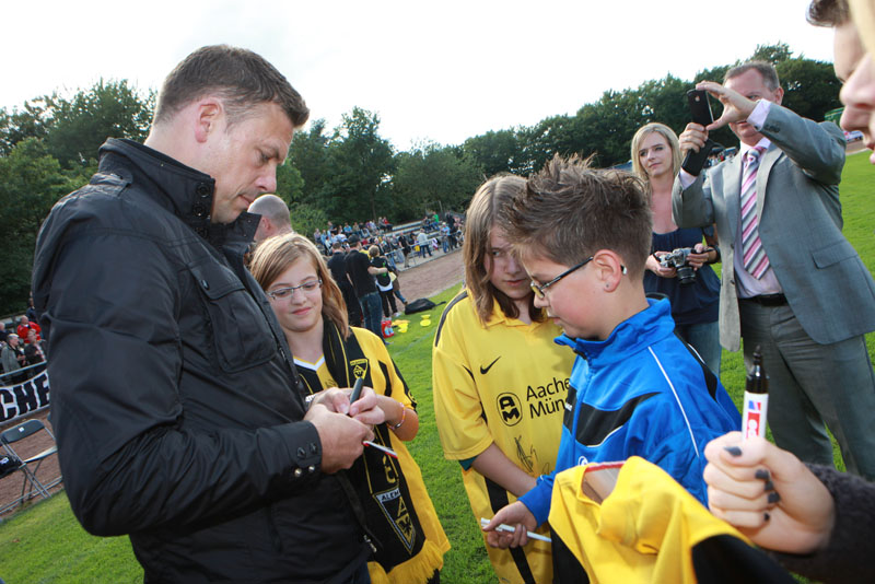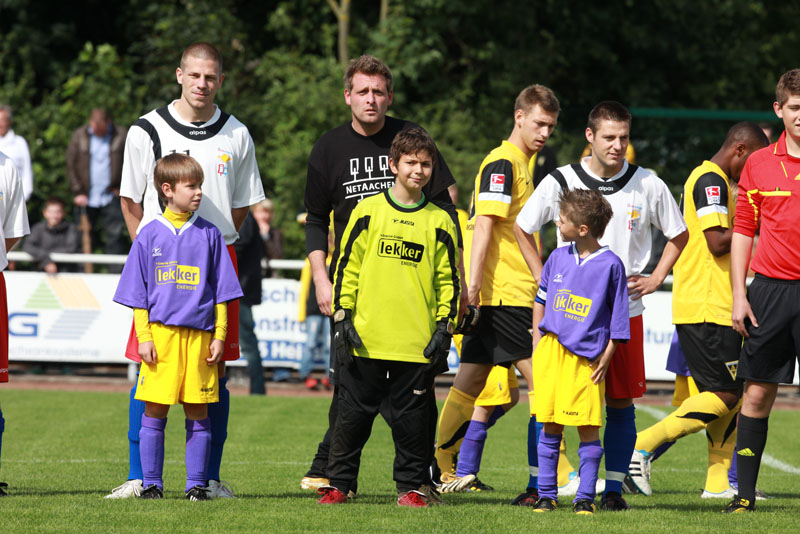 In der Halbzeit empfing NetAachen-Geschäftsführer Andreas Schneider einen Scheck in Höhe von 10.000 Euro für den Verein HEINSelmänner e.V. Dieser setzt sich für hilfsbedürftige Menschen im Kreis Heinsberg ein und wurde von Mitarbeitern der NetAachen gegründet. Auf dem Feld wurde munter gewechselt, Hyballa tauschte erneut das gesamte Personal. Nach der Einheit am Vormittag wirkten die Jungs vom Tivoli müde, weshalb weiterhin keine große Dominanz entstand. Marco Stiepermann setzte einen Freistoß auf die Latte (69.). Eine feine Freistoß-Variante von Stiepermann verlängerte Tobias Feisthammel, aber Seyi Olajengbesi köpfte neben das Tor, statt dem einschussbereiten Daniel Engelbrecht das Leder zu überlassen. 60 Sekunden später war Engelbrecht am Zug, sein Schuss wurde aber von der Linie gekratzt. Es blieb beim 1:1.