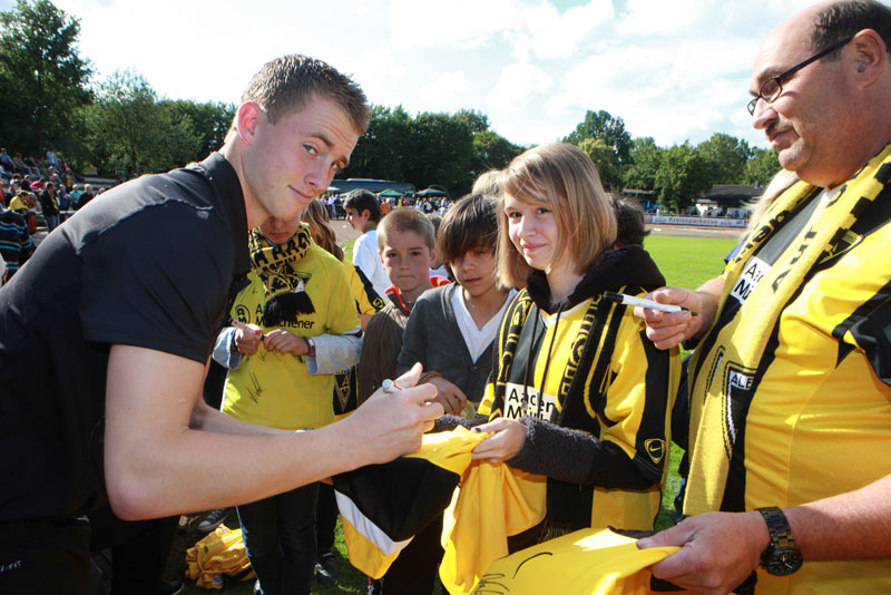Ein Erlös von 10.000 Euro für Verein HEINSelmänner e.V. und eine Partie, in der sich die Alemannia gegen die Heinsberger Auswahl „Best of the West“ sehr schwer tat – so lautet die Zusammenfassung des dritten Testspiels der Schwarz-Gelben in Oberbruch. Nach 90 Minuten trennten sich beide Teams mit 1:1 – und das hatten sich die Amateure redlich verdient.