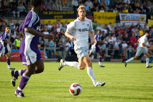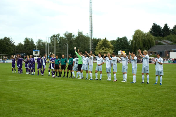 In der Folgezeit lieferten sich beide Teams eine offene Partie mit leichten Feldvorteilen für die Lila-Weißen. So brillierte Kristian Nicht erstmals in der 13. Minute gegen den frei vorm Tor stehenden Mark de Man. In der 26. Minute nutze Laurentiu Reghecampf eine erste Unsicherheit in der bis dahin gut sortierten Hintermannschaft Anderlechts und bediente Szilard Nemeth, der sicher ins untere rechte Eck zum 1:0 einschob.