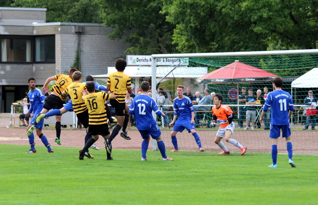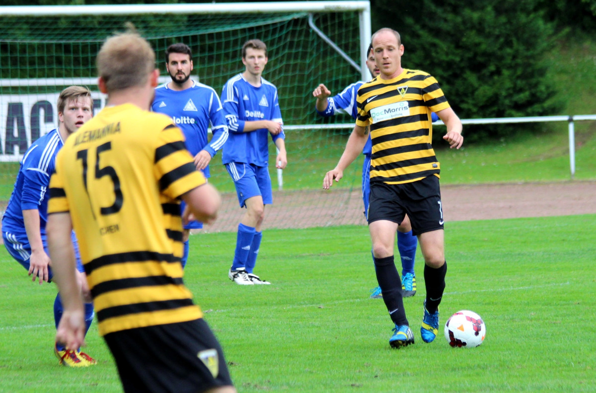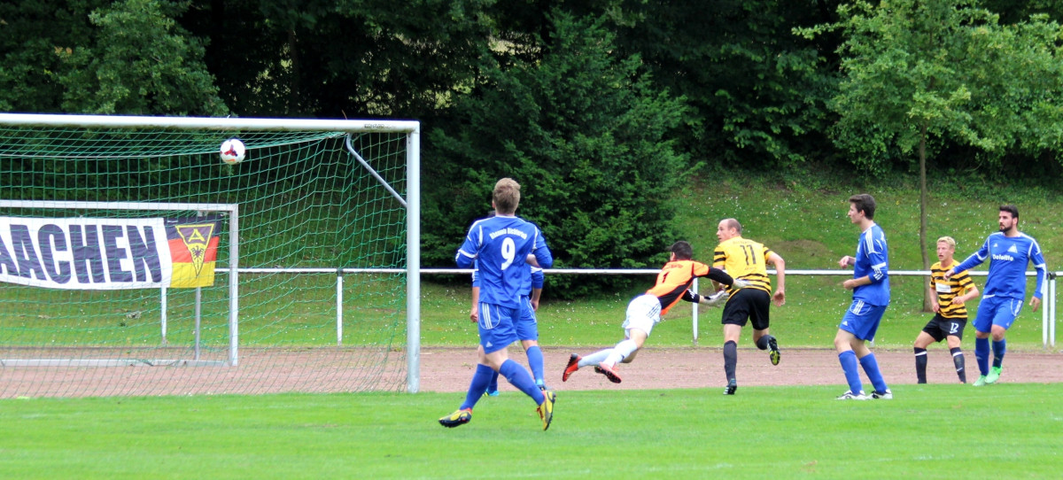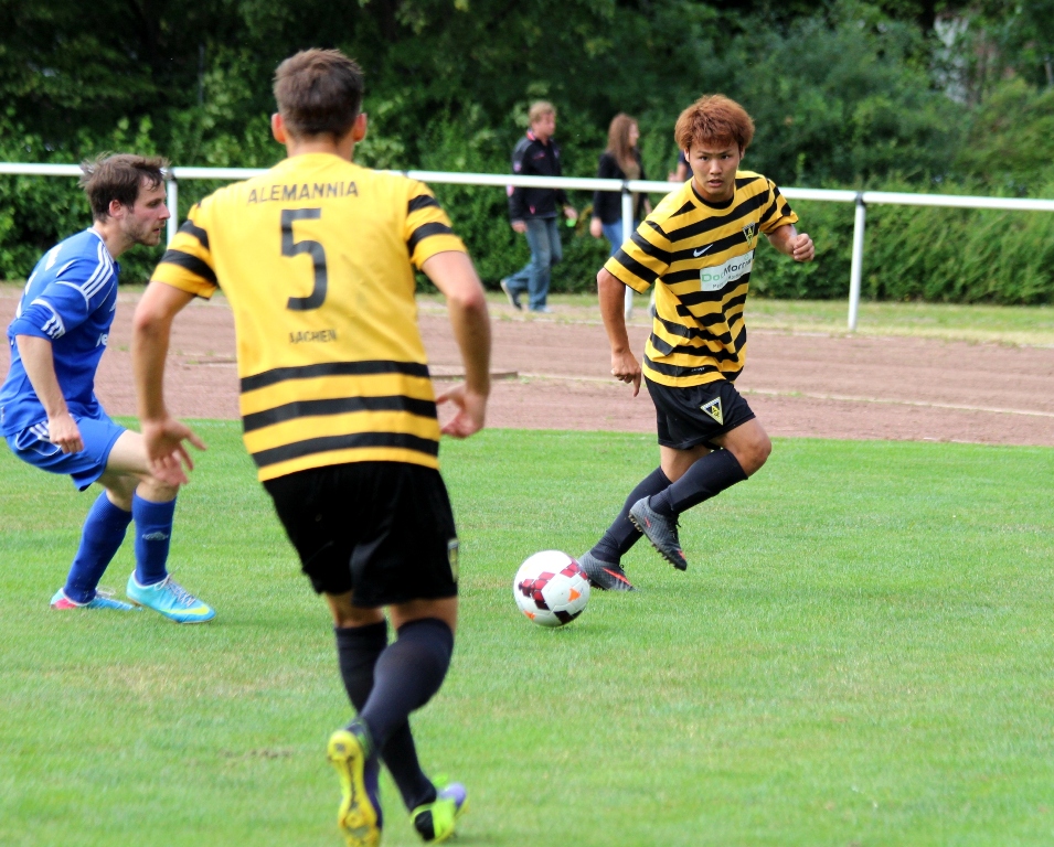 Gegen den Landesliga-Absteiger aus dem Aachener Stadtteil eröffneten die Tivoli-Kicker den Torreigen in Spielminute zehn. Behrens legte die Kugel am rechten Flügel für Ernst ab, dessen präzise Flanke Lejan am kurzen Pfosten in die Maschen köpfte – 0:1. Nach einem Zuspiel von Garcia konnte Behrens wenig später im Strafraum nur noch durch ein Foul gebremst werden. Dowidat schnappte sich die Kugel und verwandelte sicher zum 0:2 (18.). Die Alemannen präsentierten sich weiter in Spiellaune. Demai führte einen Freistoß schnell auf Behrens aus, der das Leder in den Lauf von Garcia legte. Frei vor dem gegnerischen Gehäuse ließ der Spanier sich die Chance nicht nehmen und traf zum 0:3 (30.). Auch das 0:4 resultierte aus einem schönen Spielzug. Dowidat steckte die Kugel für Müller durch, der den besser postierten Behrens bediente. Ohne Mühe konnte der am Vortag verpflichtete Neuzugang aus Hannover seinen ersten Treffer im neuen Dress erzielen (38.).
