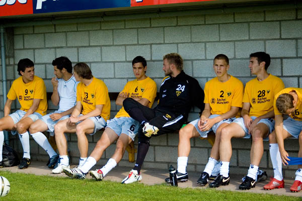 Alemannia Aachen: Pecka (85. Milchraum), Lagerblom (46. Fiel), Nemeth (63. Krontiris), Ebbers, Reghecampf, Lehmann, Vukovic, Stehle (72. Polenz), Leiwakabessy (83. Weigelt), Klitzpera, Stuckmann / Trainer: Guido Buchwald