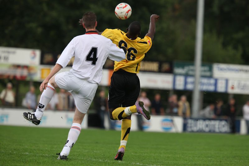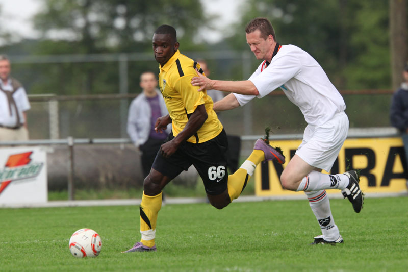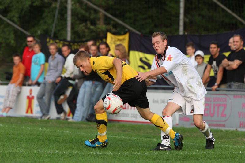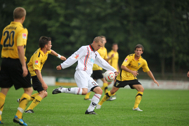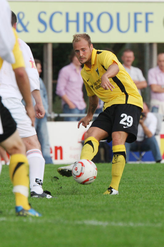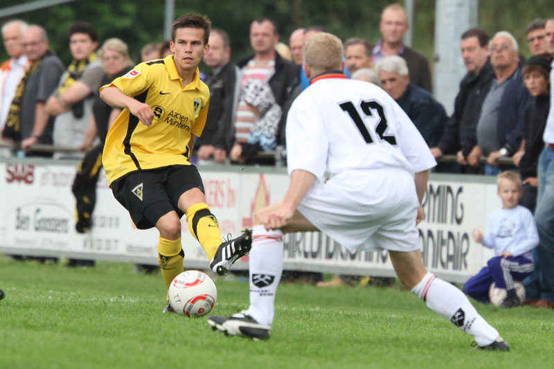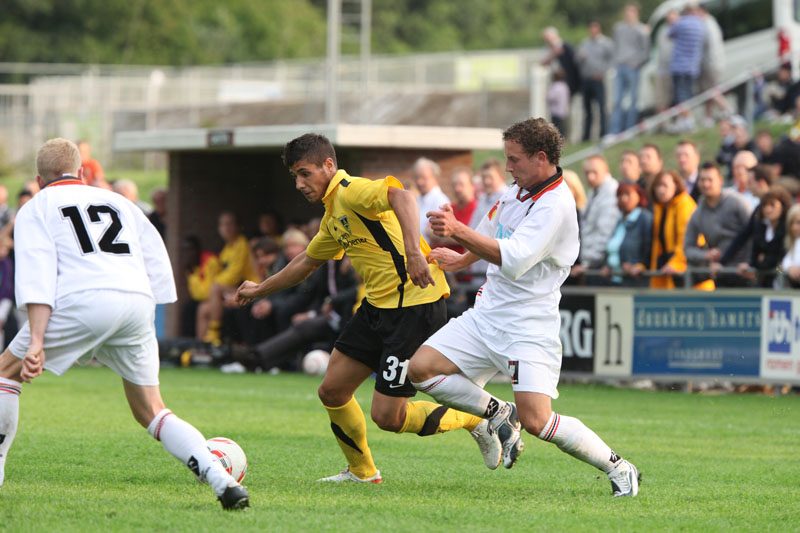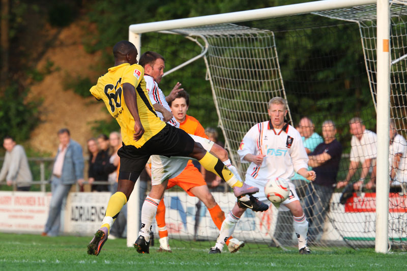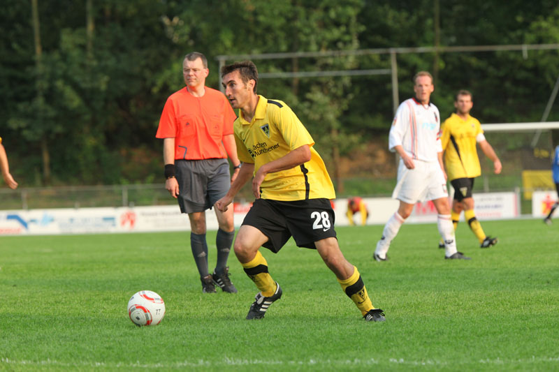 Im ersten Test nach dem Trainingslager verlief das Spiel wie so oft in solchen Duellen: Alemannia erhielt überdurchschnittlich viel Ballbesitz, der Fünftligist stand tief in der Defensive. Zweimal Höger, und Tsoumou zielten in der Anfangsphase zu ungenau. In der 12. Minute scheiterte der Gastspieler frei vor dem Keeper an dessen Fußabwehr. Acht Minuten später machte es der junge Angreifer besser und erzielte mit einem Seitfallzieher die Aachener Führung (20.). Ojamaa „klaute“ kurz darauf den Ball, überlegte auf dem Weg zum Tor aber zu lange und ließ sich abdrängen. Das Leder lief gefällig durch die Reihen der Alemannia, in mancher Szene fehlte die Entschlossenheit beim Abschluss. Humorlos erledigte Tsoumou dann aber die Aufgabe als „Abstauber“ im Fünfmeterraum, als er die 2:0-Pausenführung besorgte (39.).