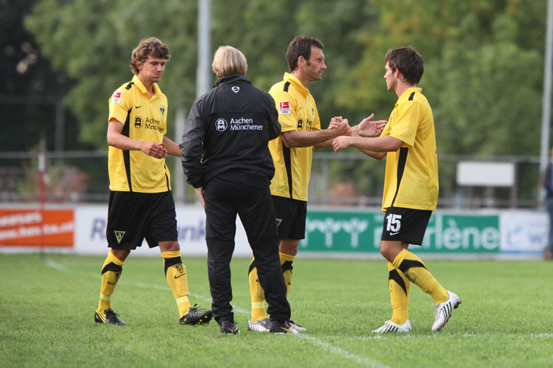 Alemannia Aachen: Krumpen (46. Unger) – Wilschrey (70. Arslan), Casper (46. Herzig), Stehle, Stieber – Höger (58. Burkhardt) – Junglas (66. Gueye), Kratz (58. Zdebel), Uludag (46. Nielsen) – Tsoumou (66. Auer), Ojamaa (58. Müller) / Trainer: Peter Hyballa