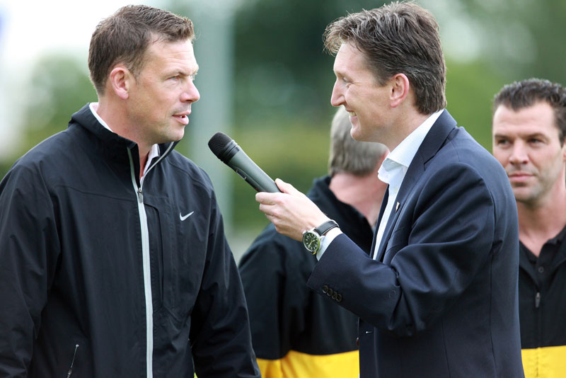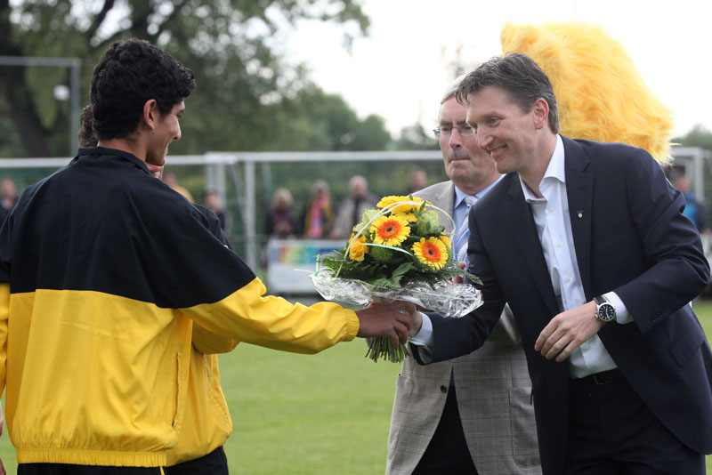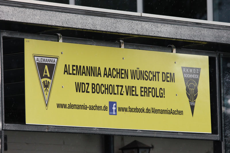 WDZ Bocholtz hat sein Vereinsgelände in der Vergangenheit immer wieder für das Training der Jugendmannschaften der Alemannia zur Verfügung gestellt. Durch die neuen Kunstrasenplätze wird dies künftig wohl nicht mehr notwendig sein, zum Dank statteten die Schwarz-Gelben dem Achtligisten dennoch einen Besuch ab. Sportdirektor Erik Meijer überreichte vor der Partie ein unterschriebenes Trikot für das Vereinsheim des Klubs.