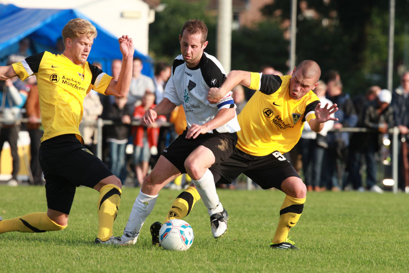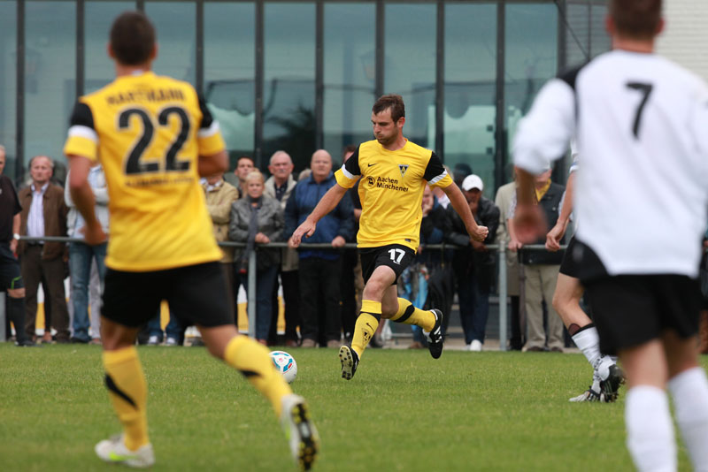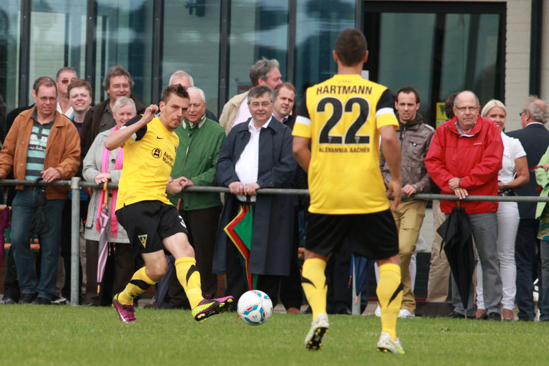 Als der Schiedsrichter anpfiff, waren die Amateure im Gegensatz zu den Profis gleich hellwach. Keine 30 Sekunden waren absolviert, da ging der Gastgeber in Führung. Sergiu Radu korrigierte den Betriebsunfall wenig später per Kopf (4.), ehe Lennart Hartmann mit einem sehenswerten Schlenzer die Führung markierte (6.). Alemannia agierte mit zwei Spitzen und einem ebenfalls sehr offensiven Narciso Lubasa, vor der Abwehr führte Bas Sibum lautstark Regie, die Kreativ-Abteilung bildeten Ray Yabo und Hartmann. Über die linke Seite leitete Timo Achenbach das 3:1 ein, Radu vollstreckte überlegt ins lange Eck (15.). Auch Daniel Engelbrecht machte wieder sein Tor, er setzte eine Vorarbeit von Hartmann ins lange Eck (31.).