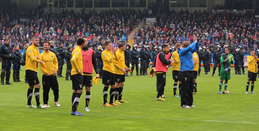 Am 38. und letzten Spieltag der 3. Liga musste sich die Alemannia beim VfL Osnabrück mit 0:4 (0:3) geschlagen geben. Gegen hungrige Hausherren zeigten die Schwarz-Gelben vor 13.900 Zuschauern zu wenig Gegenwehr und verloren zudem nach 50 Minuten noch Keeper Mark Flekken, der wegen einer Notbremse des Feldes verwiesen wurde.